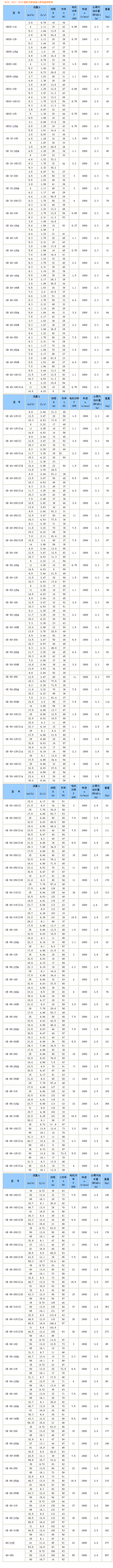 GB型便拆立式管道离心泵性能参数表(1)