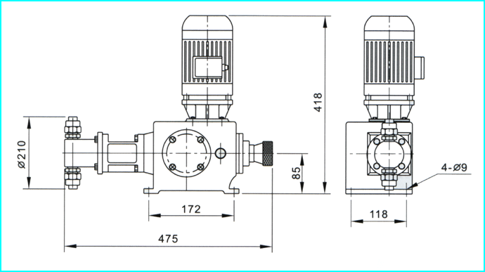 不同型号的计量泵均可根据用要求装配变频电机(能接收4-20mA电流信号)或防爆电机。