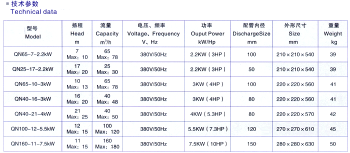 适用于三相电源,具有外观美、防锈、耐腐蚀性强(PH值4~10),使用于喷泉、海水美殖、园林及农田灌溉、建筑等领域。