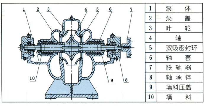 S、SH型单级双吸泵结构原理图: