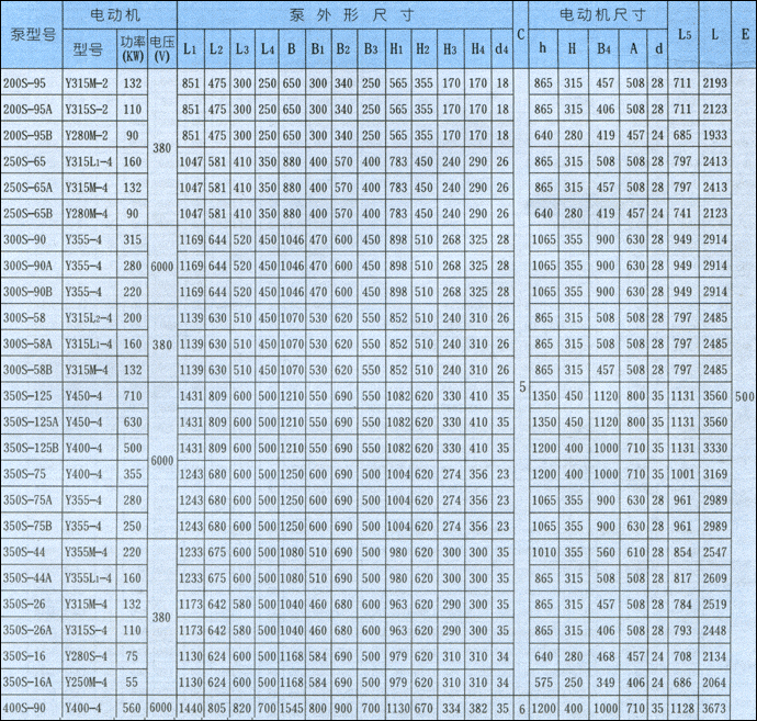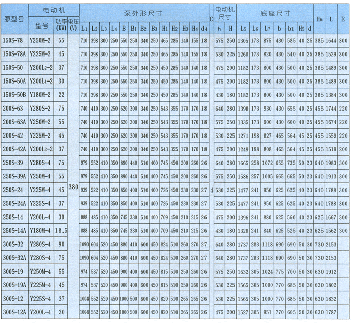 S、SH型单级双吸泵外形安装尺寸表: