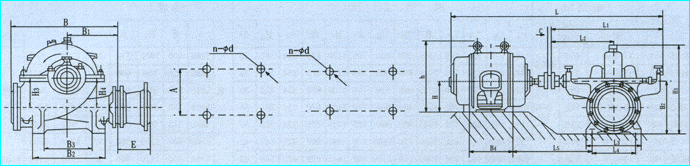 S、SH型单级双吸泵外形安装尺寸图: